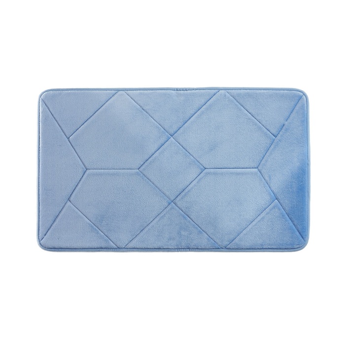 Удивительно мягкий коврик для ванной небесно-голубого цвета с ромбовидным узором и эффектом памяти.