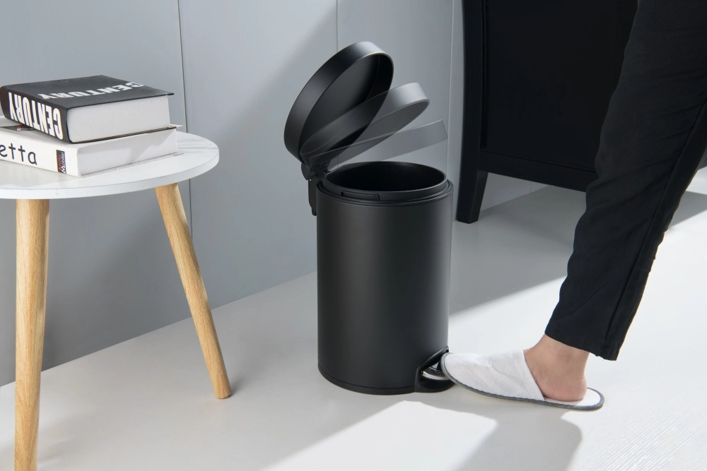 Купить Ведро для мусора Aquatek AQ4992MB с педалью, с крышкой, 8 л, напольное, нержавеющая сталь, форма округлая, для туалета/ванной/кухни, цвет матовый черный, с вынимающимся черным баком, для квартиры, дома, дачи, размеры, метр, длина, ширина, сантехника, размер (Акватек) в магазине Сантехмастер недорого,