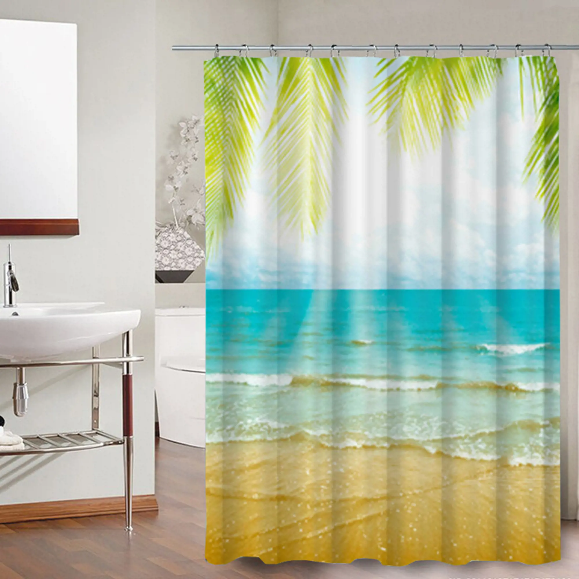 Водонепроницаемая занавеска для ванной комнаты с 12 люверсами из нержавеющей стали и с утяжеляющей лентой, не позволяющей занавеске меняться.