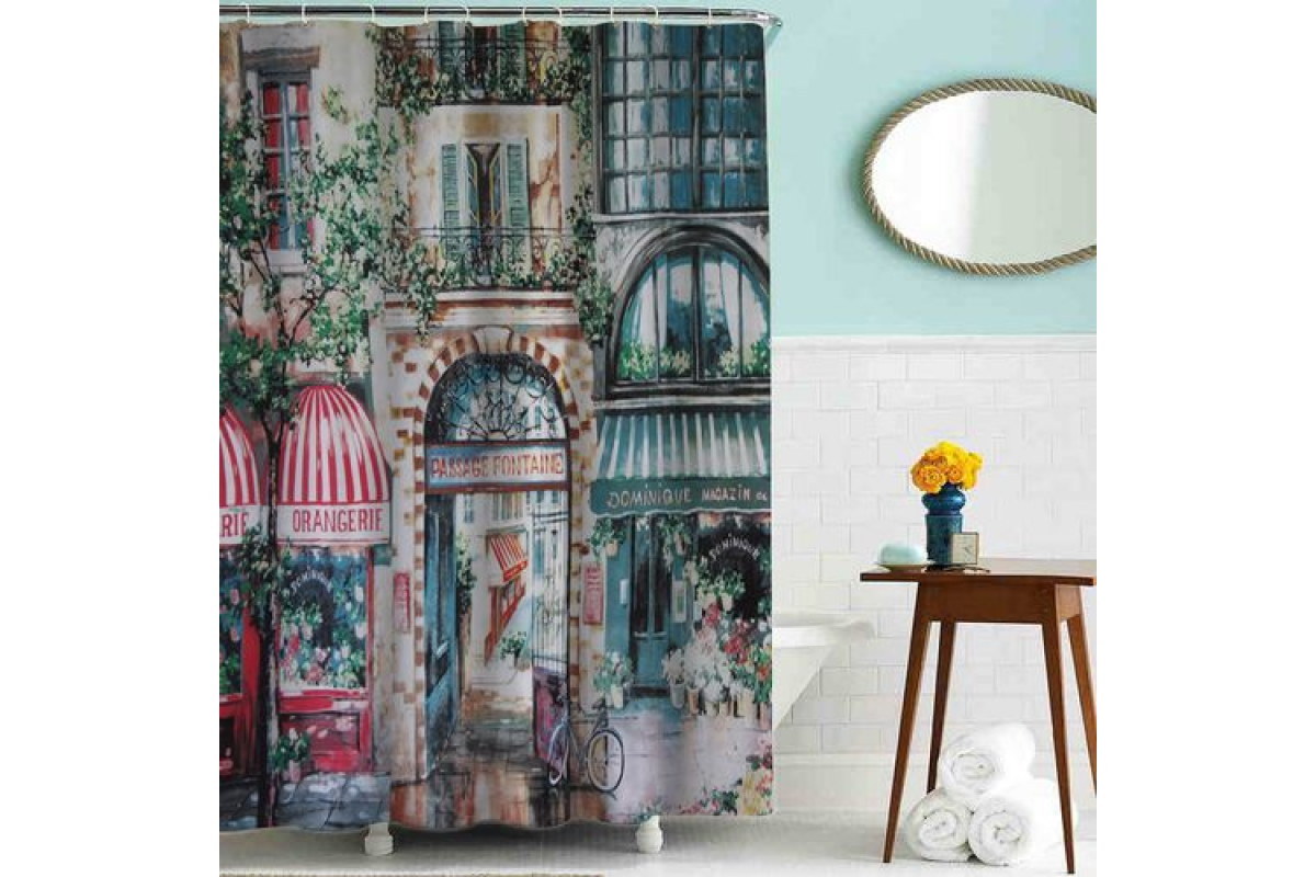 Водонепроницаемая занавеска для ванной комнаты с 12 люверсами из нержавеющей стали и с утяжеляющей лентой, не позволяющей занавеске меняться.