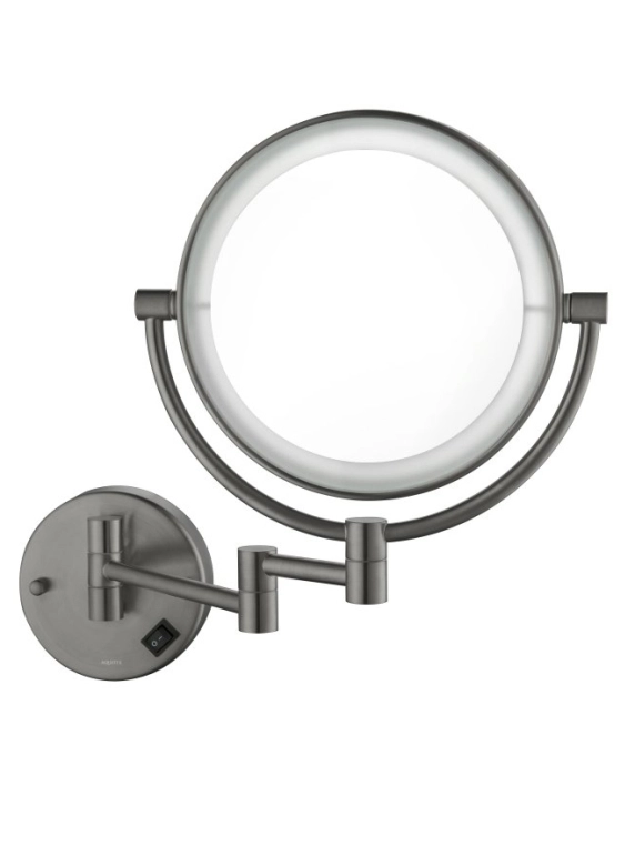 Купить Зеркало Aquatek AQ4912BGM косметическое, круглое, настенное, увеличение x 5, с подсветкой, двустороннее, телескопическое, цвет оружейная сталь, латунь, поворотное/наклоняемое, функции, размеры, сантехника, ванной, квартиры, дома, дачи, размеры, метр, длина, ширина, сантехника, размер (Акватек) в магазине Сантехмастер недорого,