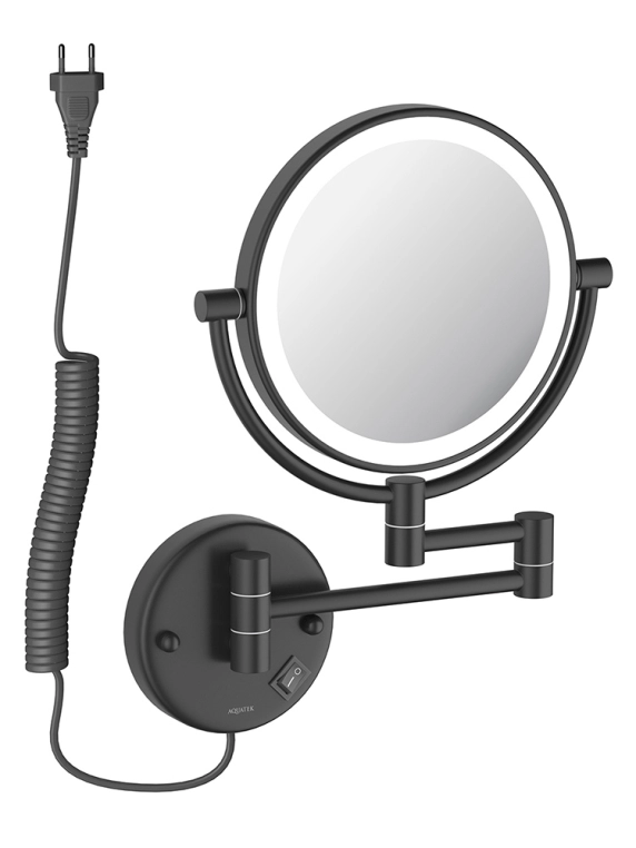 Купить Зеркало Aquatek AQ4915MB косметическое, круглое, настенное, увеличение x 5, с подсветкой, цвет матовый черный, латунь, поворотное/наклоняемое, функции, размеры, сантехника, ванной, квартиры, дома, дачи, метр, длина, ширина, сантехника, размер (Акватек) в магазине Сантехмастер недорого,