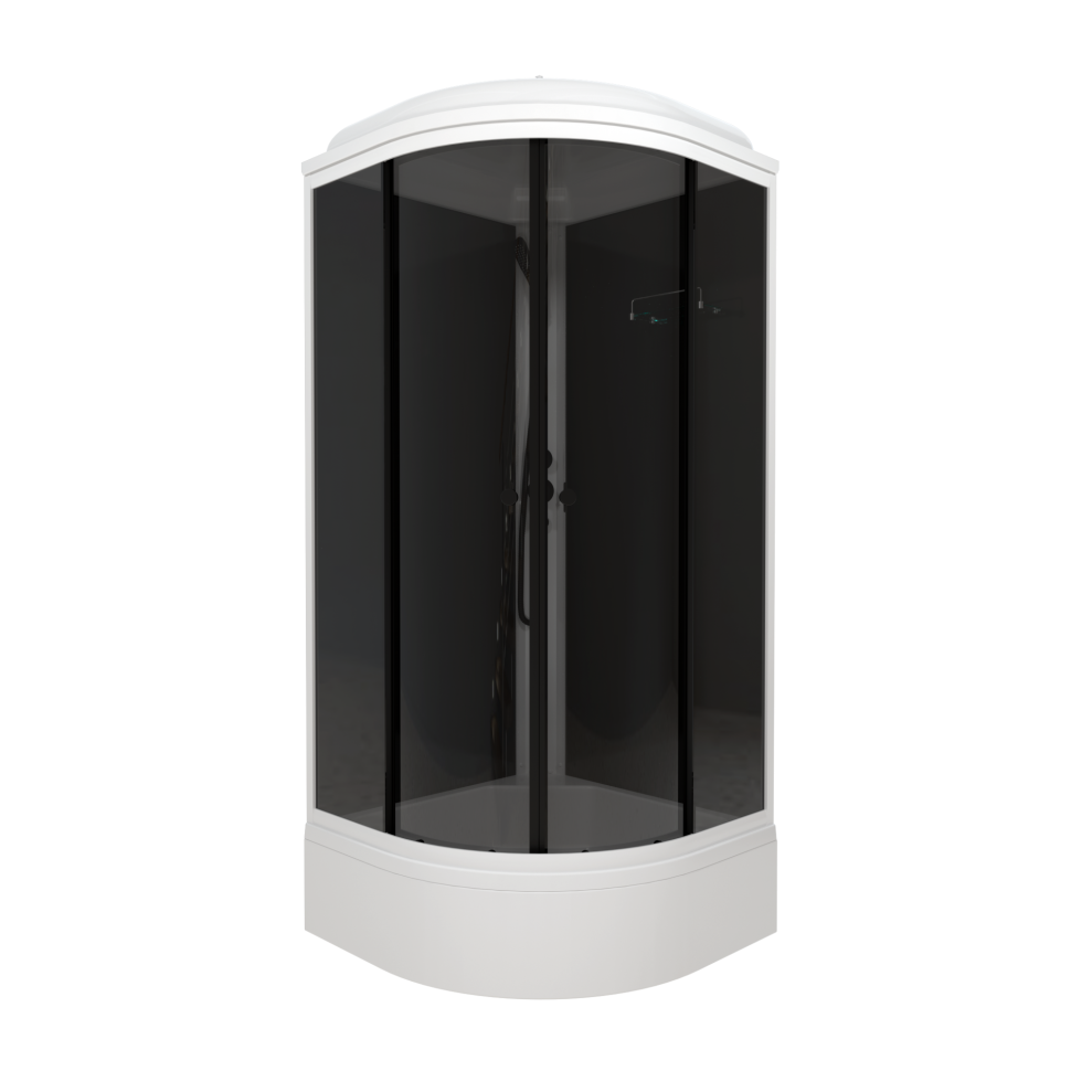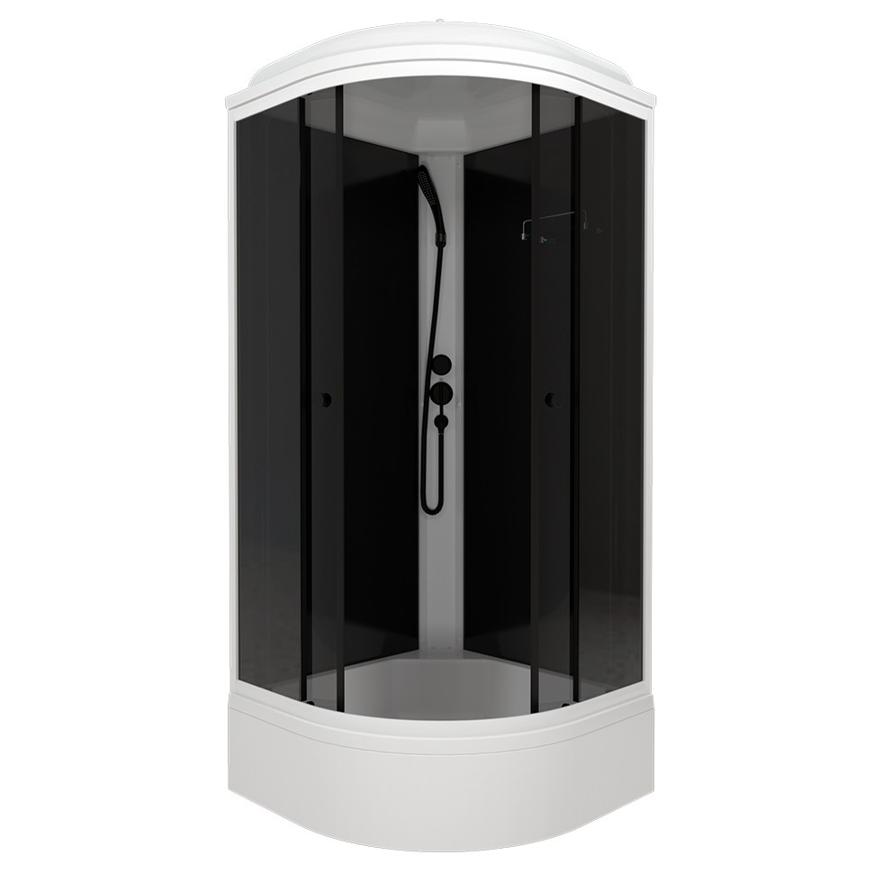 Душевая кабина Тритон Грэй-Блэк А 90х90х217,5 см поддон низкий, четверть круга, угловая, без гидромассажа, с верхним душем, стекла грэй, профиль алюминий, цвет белый, закрытая