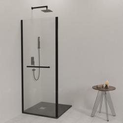 Купить Боковая панель/душевая перегородка RGW Z-060-2B, 80х195 см, прозрачное стекло, профиль черный, правая/левая, плоская (панель), из прозрачного стекла, (ограждение без поддона) стеклянная, правостороннее/левостороннее, универсальное, для душа, ванной, квартиры, дома, дачи, бани, размеры, сантехника (РГВ) в магазине Сантехмастер недорого.
