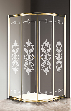 Купить Душевой уголок Cezares Giubileo, 80х80 см, без поддона, четверть круга, угловой, стекло прозрачное с матовым узором, (без сифона) без крыши, раздвижной, стеклянный, алюминиевый профиль (золото), без антискольжения, комплект, для душа, ванной, квартиры, дома, дачи, размеры, метр, литой, литьевой, сантехника (Цезарес) в магазине Сантехмастер недорого.