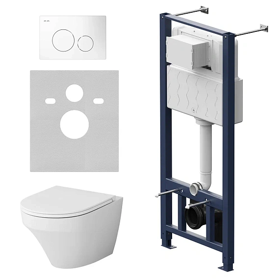 Комплект унитаза с инсталляцией AM.PM Inspire, c сиденьем микролифт, с клавишей смыва (кнопкой, клавишей двойного смыва) белая, система для подвесного унитаза, со скрытым смывным бачком (бак), с подвесным унитазом