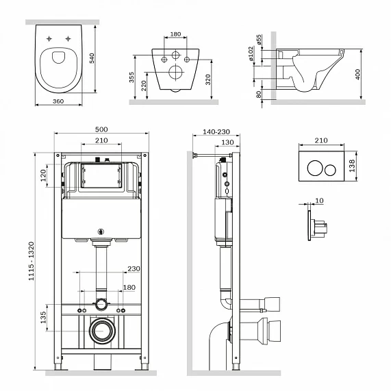 Гарантия от производителя: санфарфор- 25 лет, сиденье-2 года, инсталляция-10 лет, клавиша смыва-2 года