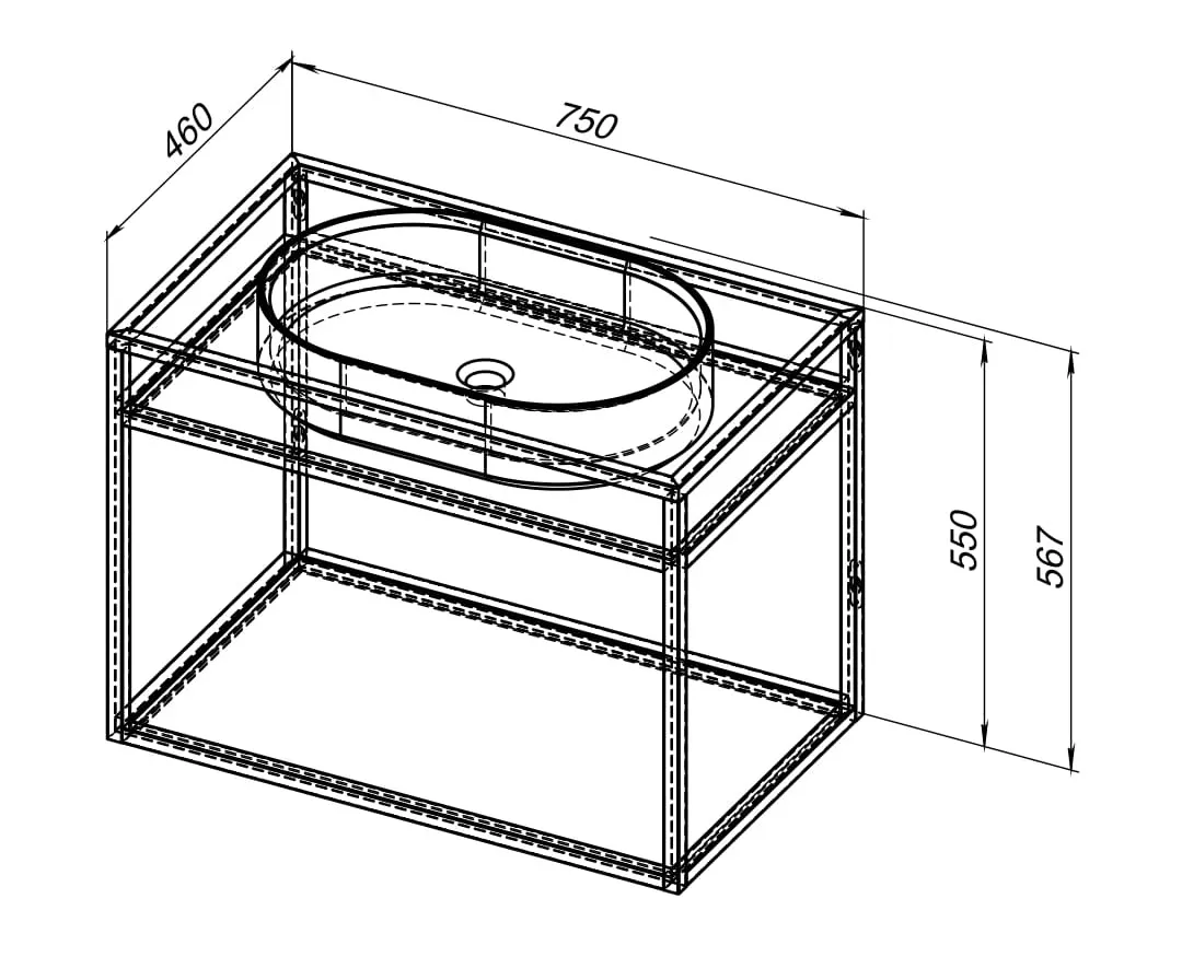 Консоль под раковину Allen Brau Liberty 75, 750х460х550 мм, подвесная, цвет медь браш, металлическая, каркас под раковину, прямоугольная