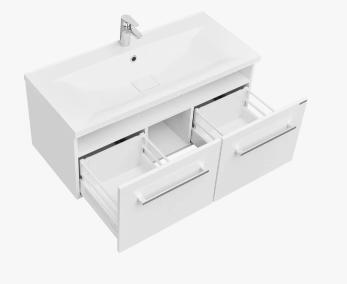 Тумба с двумя ящиками со встроенной системой плавного закрывания.