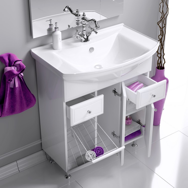 Тумба Aqwella Барселона Lux 85 с бельевой корзиной с раковиной Стиль 85 BA0108K