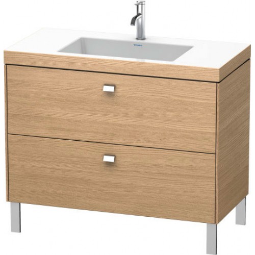 Купить Тумба c раковиной Duravit Brioso, 100х48х70,1 см, напольная, 2 выдвижных ящика, ДСП, цвет: дуб европейский/хром /Vero Air, мебельная, прямоугольная, цвет белый, фарфоровая, без отверстия под смеситель, без перелива, умывальник, рукомойник, без ножек, подвесная/накладная/ встоенная/встраиваемая сверху на тумбу/полувстраиваемая, мебельная, размеры, комплект, сантехника, классическая, коллекция, тумбочка, влагостойкая (ДЮРАВИТ) в магазине Сантехмастер недорого,