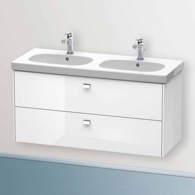 Купить Тумба под раковину Duravit Brioso, 117х46,9х56,3 см, подвесная, 2 выдвижных ящика, ДСП, цвет: белый глянец/хром, шкафчик навесной, механизм доводчика, прямоугольная, правая/левая, для раковины D-Code, в ванную комнату, правосторонняя/левосторонняя/универсальная, умывальник, рукомойник, мебельная, размеры, комплект, сантехника, классическая, коллекция, тумбочка, влагостойкая (ДЮРАВИТ) в магазине Сантехмастер недорого