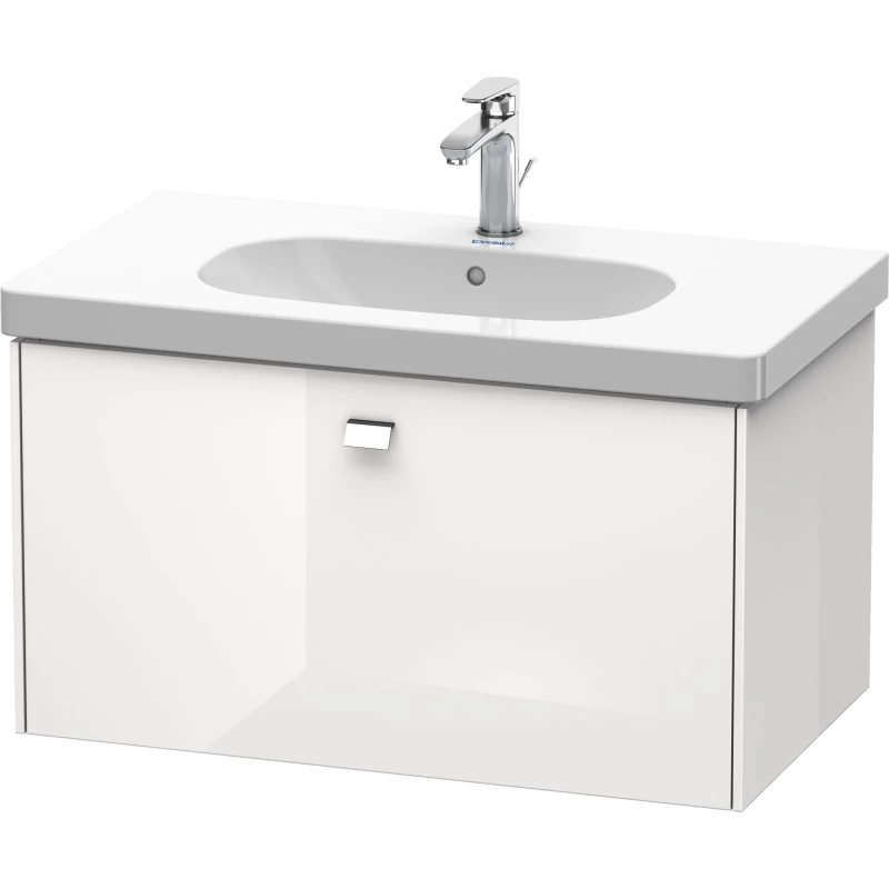 Купить Тумба под раковину Duravit Brioso, 82х46,9х45,2 см, подвесная, 1 выдвижной ящик, ДСП, цвет: белый глянец/хром, шкафчик навесной, механизм доводчика, прямоугольная, правая/левая, для раковины D-Code, в ванную комнату, правосторонняя/левосторонняя/универсальная, умывальник, рукомойник, мебельная, размеры, комплект, сантехника, классическая, коллекция, тумбочка, влагостойкая (ДЮРАВИТ) в магазине Сантехмастер недорого