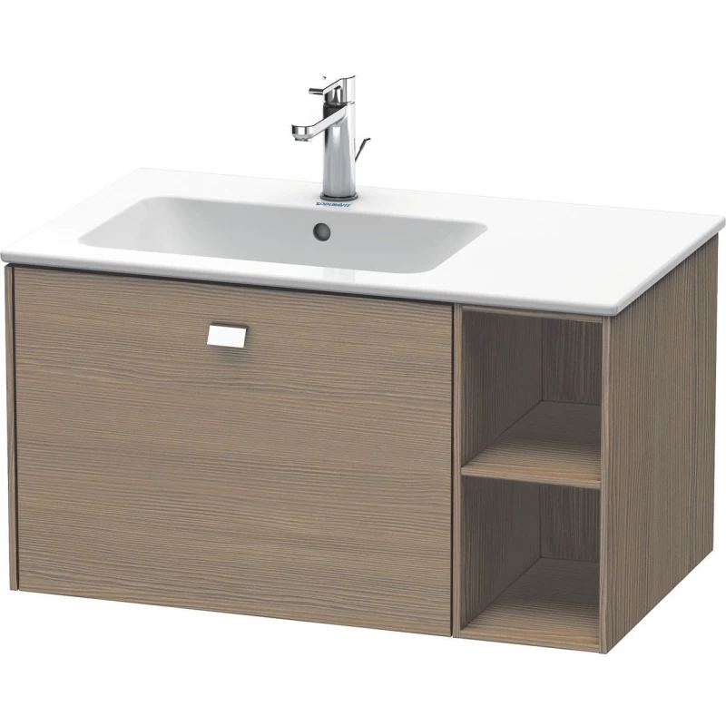 Купить Тумба под раковину Duravit Brioso, 82х47,9х44,2 см, подвесная, 1 выдвижной ящик, с открытой полкой слева, ДСП, цвет: дуб терра/хром, шкафчик навесной, механизм доводчика, прямоугольная, левая, в ванную комнату, левосторонняя, умывальник, рукомойник, мебельная, размеры, комплект, сантехника, классическая, коллекция, тумбочка, влагостойкая (ДЮРАВИТ) в магазине Сантехмастер недорого