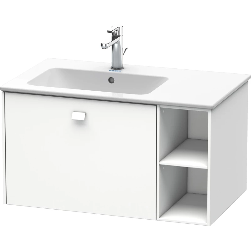 Купить Тумба под раковину Duravit Brioso, 82х47,9х44,2 см, подвесная, 1 выдвижной ящик, с открытой полкой слева, ДСП, цвет: белый матовый, шкафчик навесной, механизм доводчика, прямоугольная, левая, в ванную комнату, левосторонняя, умывальник, рукомойник, мебельная, размеры, комплект, сантехника, классическая, коллекция, тумбочка, влагостойкая (ДЮРАВИТ) в магазине Сантехмастер недорого
