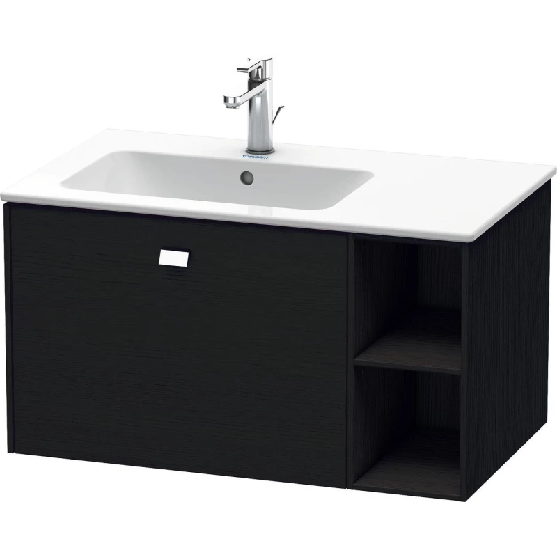 Купить Тумба под раковину Duravit Brioso, 82х47,9х44,2 см, подвесная, 1 выдвижной ящик, с открытой полкой слева, ДСП, цвет: дуб черный/хром, шкафчик навесной, механизм доводчика, прямоугольная, левая, в ванную комнату, левосторонняя, умывальник, рукомойник, мебельная, размеры, комплект, сантехника, классическая, коллекция, тумбочка, влагостойкая (ДЮРАВИТ) в магазине Сантехмастер недорого
