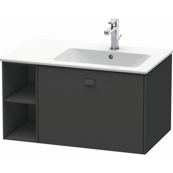 Купить Тумба под раковину Duravit Brioso, 82х47,9х44,2 см, подвесная, 1 выдвижной ящик, с открытой полкой справа, ДСП, цвет: графит матовый, шкафчик навесной, механизм доводчика, прямоугольная, правая, в ванную комнату, правосторонняя, умывальник, рукомойник, мебельная, размеры, комплект, сантехника, классическая, коллекция, тумбочка, влагостойкая (ДЮРАВИТ) в магазине Сантехмастер недорого