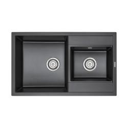 Купить Мойка кухонная Paulmark TANDEM, 82х50х19,5 см, две чаши, врезная, кварцевый композит, прямоугольная, цвет черный, без отверстия под смеситель, без крыла, слив-перелив, врезная в столещницу, для кухни, встраиваемая вровень со столешницей, литьевая, литая, каменная, искусственный гранит, мебельная, кухонная, глубокая, сантехника, размеры, толщина, размеры, диаметр (Паулмарк) в магазине Сантехмастер недорого