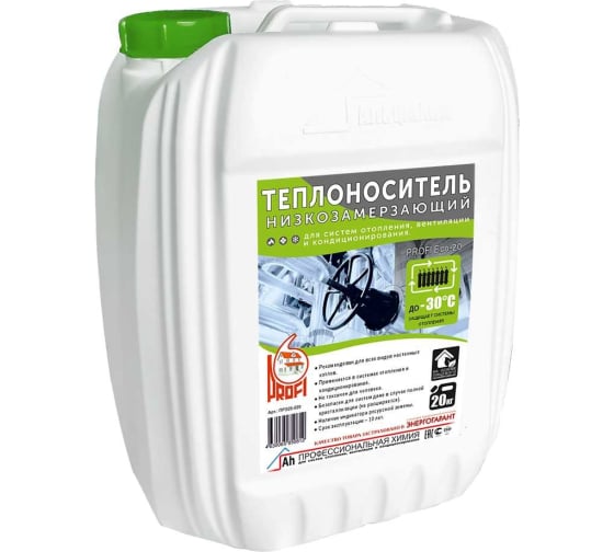 Купить Теплоноситель PROFI "Есо-20" на основе пропиленгликоля, в канистре 20 кг ПРЭ20-020 красный, (бытовой антифриз), для системы закрытой отопления и охлаждения, системы теплых полов частного загородного дома, состав пропиленгликоль, температура -20°C (Профи) в магазине Сантехмастер недорого.