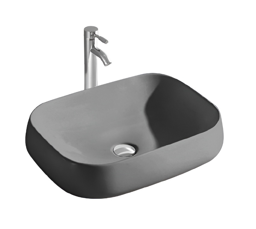 Купить Раковина/умывальник Aquatek, 56х42 см, накладная, прямоугольная, санфарфор, цвет серый матовый, без отверстия под смеситель, без слив-перелива, умывальник, рукомойник, классическая/стандартная, мебельная, каменная, литьевая, литьевой мрамор, размеры, диаметр (Акватек) в магазине Сантехмастер недорого,