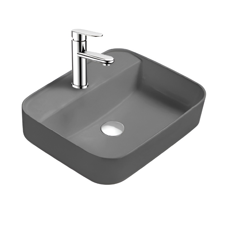 Купить Раковина/умывальник Aquatek Вега, 50х39,5 см, накладная, прямоугольная, санфарфор, цвет серый матовый, с отверстием под смеситель, без слив-перелива, умывальник, рукомойник, классическая/стандартная, мебельная, каменная, литьевая, литьевой мрамор, размеры, диаметр (Акватек) в магазине Сантехмастер недорого,