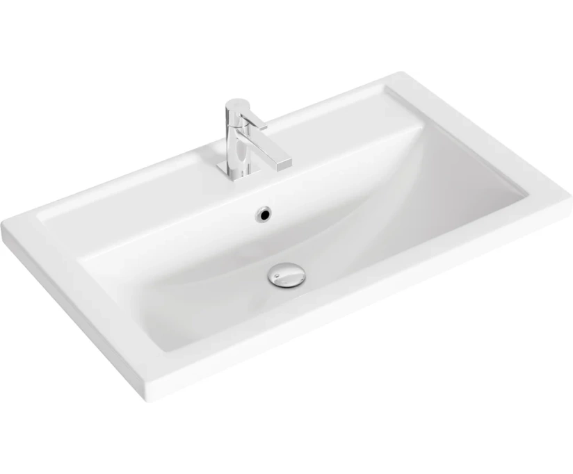 Купить Раковина Kirovit Фостер 800, 81х45,5х19,5 см, полувстраиваемая, прямоугольная, керамическая/фарфоровая, цвет белый, с отверстием под смеситель, слив-перелив, умывальник, рукомойник, классическая/стандартная, мебельная, каменная, литьевая, литьевой мрамор, размеры, диаметр (Кировит) в магазине Сантехмастер недорого,