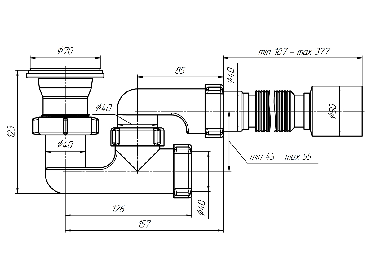 Тип сифона: регулируемый