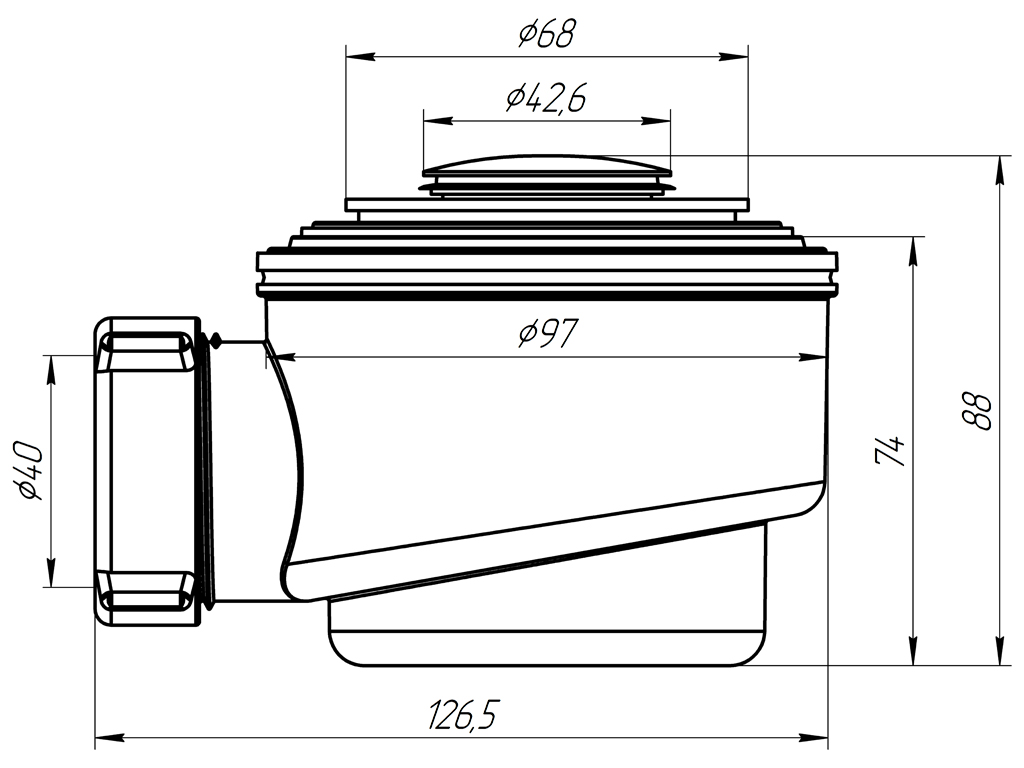 Монтажная высота 77 мм, выход для подключения к канализации 40 мм.