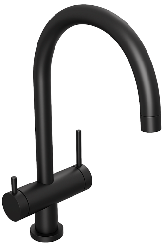 Смеситель для кухни/мойки Abelsberg Aera с каналом для фильтрованной воды, однорычажный, поворотный, керамический картридж, излив 205 мм, высота излива 230 мм латунь, цвет вулканический черный