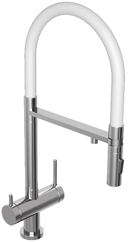 Смеситель для кухни/мойки Abelsberg Venta с каналом для фильтрованной воды, однорычажный, поворотный/гибкий/выдвижной, керамический, излив 220 мм, высота излива 200 мм латунь/силикон, цвет глянцевый хром/белый
