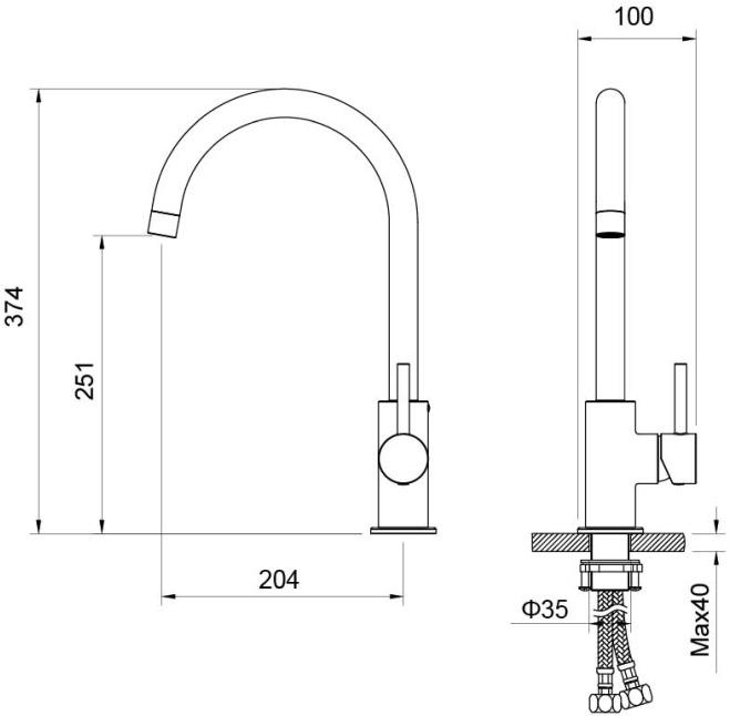 Высота излива 246 мм