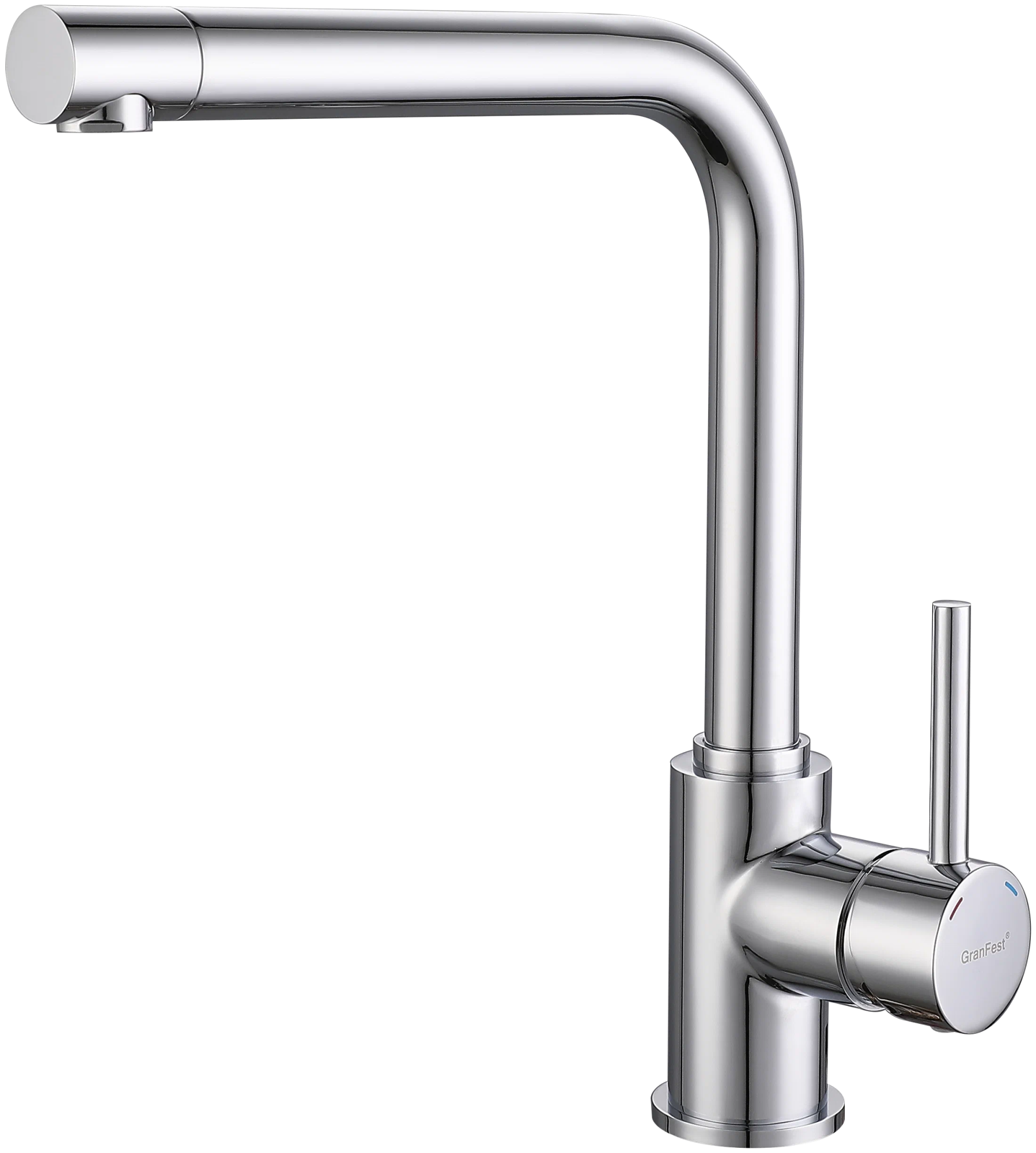 Купить Смеситель для кухни/мойки GranFest, однорычажный, керамический картридж, высокий, с поворотным изливом, длина 200 мм, латунь, цвет хром, кухонный, хромированный, вертикальный, кран, комплект, сантехника, водопроводные, размер, характеристики, высота, расстояние, длина (Гранфест) в магазине Сантехмастер недорого,