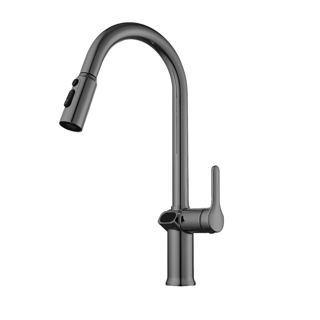 Купить Смеситель для кухни/мойки Knotlor Inspiration, однорычажный, поворотный/выдвижной, с индикатором температуры, керамический, длина излива 175 мм, латунь, цвет вороненая сталь, комплект, сантехника, водопроводные, размер, характеристики, высота, расстояние, накладной, на раковину, тумбой, чаши, металлической, из латуни, фаянсовой, больших, мини, диаметр отверстия, набортный, универсальный, над стиральной машиной, для умывальника, в ванную (Кнотлор) в магазине Сантехмастер недорого,