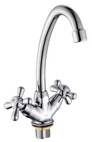 Купить Смеситель для кухни/мойки Potato P301, двухвентильный, поворотный, керамический, длина излива 124 мм, цинк, цвет хром, комплект, сантехника, водопроводные, размер, характеристики, высота, расстояние, накладной, на мойку, тумбой, чаши, металлической, латунный, нержавейка, фаянсовой, больших, мини, диаметр отверстия, набортный, универсальный, над стиральной машиной, для умывальника, на кухню, в кухню, ванную (Потато) в магазине Сантехмастер недорого,
