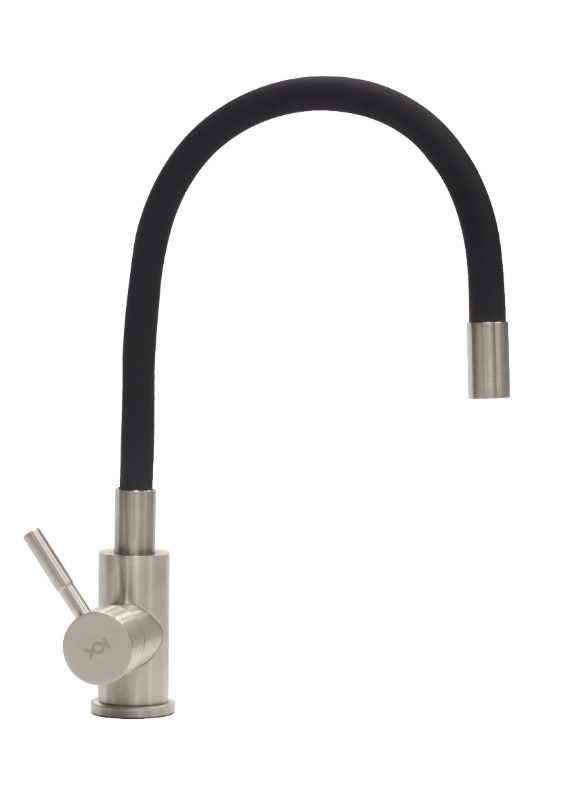 Смеситель для кухни/мойки Ukinox UM2106 SS BL однорычажный, поворотный/гибкий, керамический, длина излива 200 мм, нержавеющая сталь, цвет нержавеющая сталь/черный