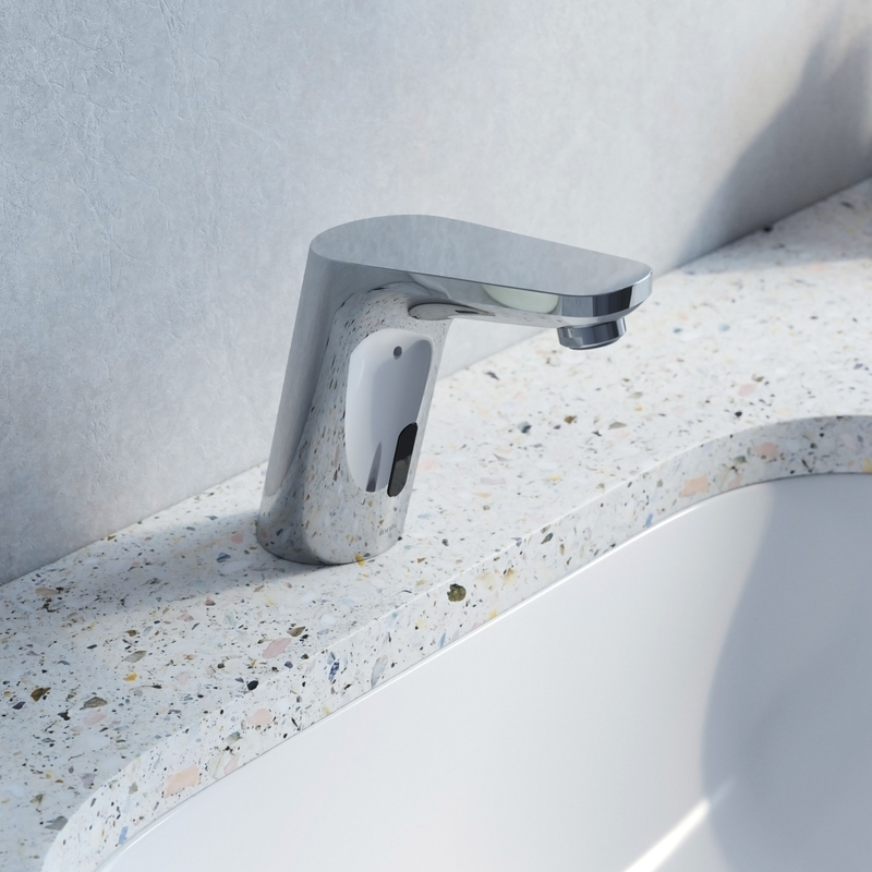 Аккуратная рукоятка на корпусе бесконтактного смесителя позволяет единожды быстро и точно подобрать комфортную температуру, а оптимальное время подачи воды (1 минута) помогает избежать необоснованного перерасхода воды.