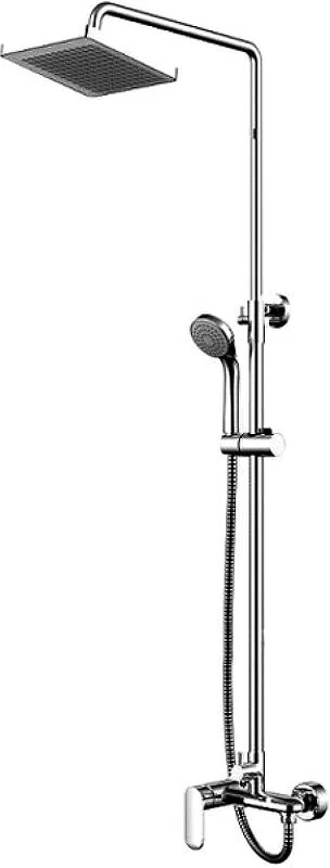 Купить Душевая система Bravat Opal, высота 1376 мм, цвет хром, комплект: однорычажный смеситель/тропический душ (с верхней лейкой)/стойка/лейка/шланг, наружного монтажа, настенная, латунная, сантехника, размер (Брават) в магазине Сантехмастер недорого,