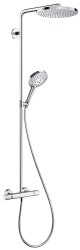 Купить Душевая система Hansgrohe Raindance Select S Showerpipe 240 1jet PowderRain, высота 108 см, цвет хром, комплект: верхний душ/ручной душ/термостат для душа/штанга для душа/держатель для душа, наружного монтажа, настенная, латунная, с термостатом, для душа/ванной, душевой, высота, размеры, универсальный, стандартный, ванной, квартиры, дома, дачи, размеры, метр, длина, ширина, сантехника, размер (ХАНСГРОЕ) в магазине Сантехмастер недорого,