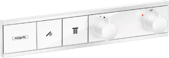 Купить Смеситель для душа Hansgrohe RainSelect термостатический, скрытого монтажа, настенный, без излива/шланга/лейки, латунь, цвет полированное золото, с термостатом, встоенный/встраиваемый, 2 потребителя, для душа, ванной, квартиры, дома, дачи, размеры, метр, длина, ширина, сантехника, размер (ХАНСГРОЕ) в магазине Сантехмастер недорого,