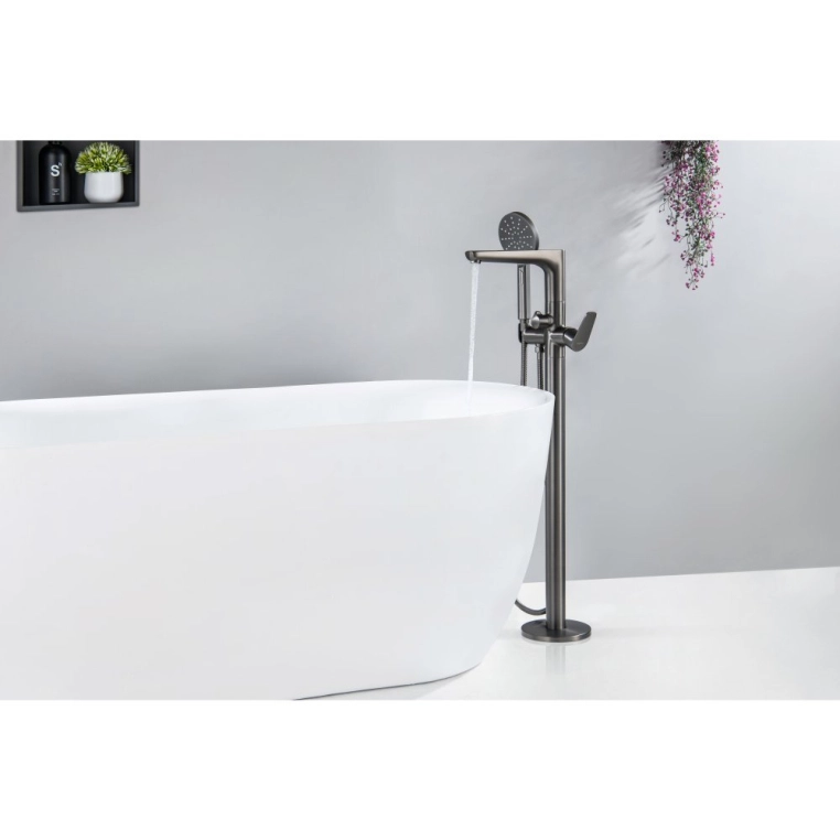 Купить Смеситель для ванны/душа Aquatek Бетта напольный, однорычажный, неповоротный, длина 264 мм, керамический, латунь, цвет оружейная сталь, однорукий, одноручный, однозахватный, одноручковый, рычажный, рычаг, кран, комплект, сантехника, водопроводные, размер, характеристики, высота, расстояние, подвесной, больших, мини, диаметр отверстия, набортный, универсальный, в ванную (Акватек) в магазине Сантехмастер недорого,