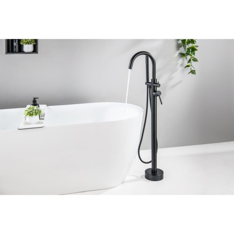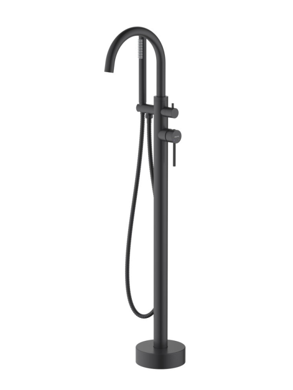 Купить Смеситель для ванны/душа Aquatek Европа напольный, однорычажный, поворотный, длина 227 мм, керамический, латунь, цвет матовый черный, однорукий, одноручный, однозахватный, одноручковый, рычажный, рычаг, кран, комплект, сантехника, водопроводные, размер, характеристики, высота, расстояние, подвесной, больших, мини, диаметр отверстия, набортный, универсальный, в ванную (Акватек) в магазине Сантехмастер недорого,