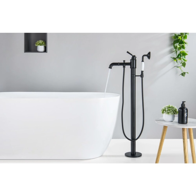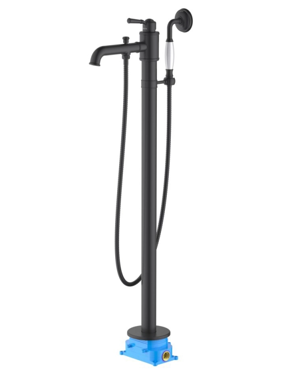 Купить Смеситель для ванны/душа Aquatek Классик напольный, однорычажный, неповоротный, длина 227 мм, керамический, латунь, цвет черный матовый, однорукий, одноручный, однозахватный, одноручковый, рычажный, рычаг, кран, комплект, сантехника, водопроводные, размер, характеристики, высота, расстояние, подвесной, больших, мини, диаметр отверстия, набортный, универсальный, в ванную (Акватек) в магазине Сантехмастер недорого,