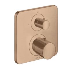 Купить Смеситель для душа Axor Citterio M термостатический, с запорным/переключающим вентилем, скрытого монтажа, настенный, без излива/шланга/лейки, квадратный, латунный, цвет шлифованное красное золото, с термостатом, встроенный/встраиваемый/термостатный, для душа, ванной, кран, комплект, квартиры, дома, дачи, размеры, метр, длина, ширина, сантехника, размер (АКСОР) в магазине Сантехмастер недорого