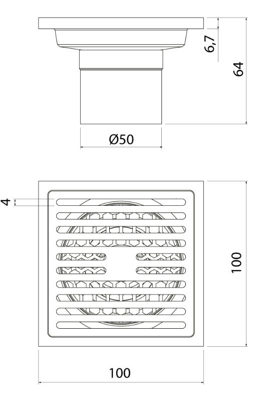 Размеры решетки, мм (Трап душевой): 100*100