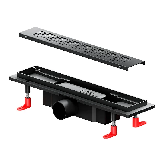 Оснащение Скребок для чистки трапа, решетка-фильтр, регулируемые опоры, корпус, решетка, комбинированный затвор с решеткой-фильтром, опоры, гидроизоляция, крючок, скребок