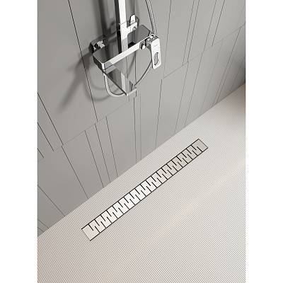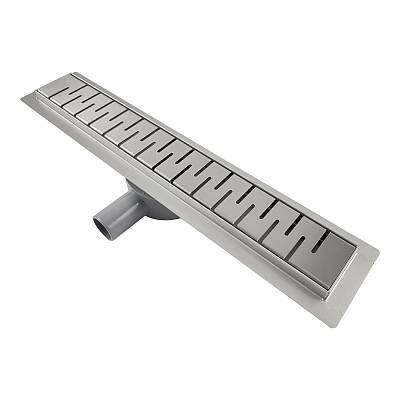 Комплектация: водоотводящий желоб из нержавеющей стали; декоративная панель; заглушка монтажная; поворотный сифон DN50, выход вбок; комплект регулируемых опор; улавливатель волос и мусора; сервисный ключ