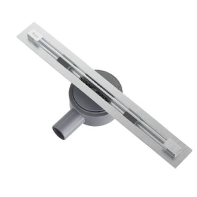 Комплектация: водоотводящий желоб из нержавеющей стали; поворотный на 360° сифон DN50; комплект регулируемых опор; улавливатель волос и мусора; сервисный ключ