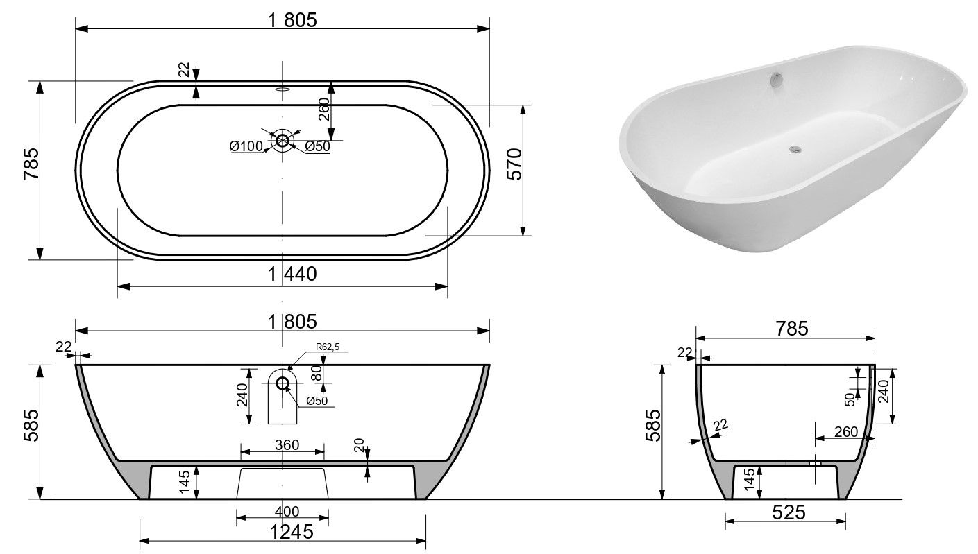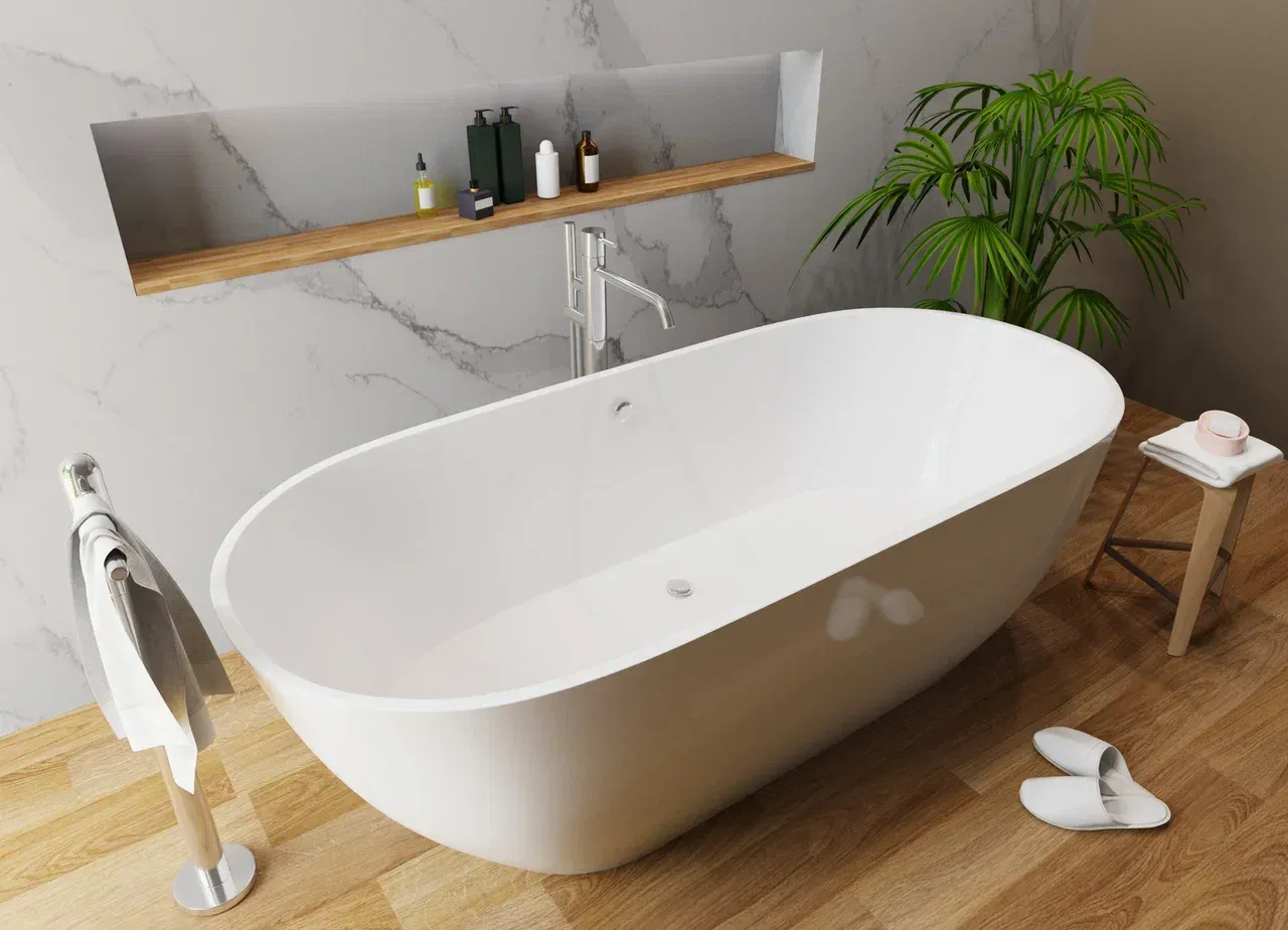 Купить Ванна Эстет Майами, 180,5х78,5 см, литьевой мрамор, цвет- белый матовый, (без гидромассажа, рамы, сифона, фронтальной панели), овальная, левосторонняя/правосторонняя, левая/правая, отдельностоящая, в квартиру, дом, дачу, хрущевку, сантехника, размер, длина, ширина (Estet) в магазине сантехники "Сантехмастер" дешево.