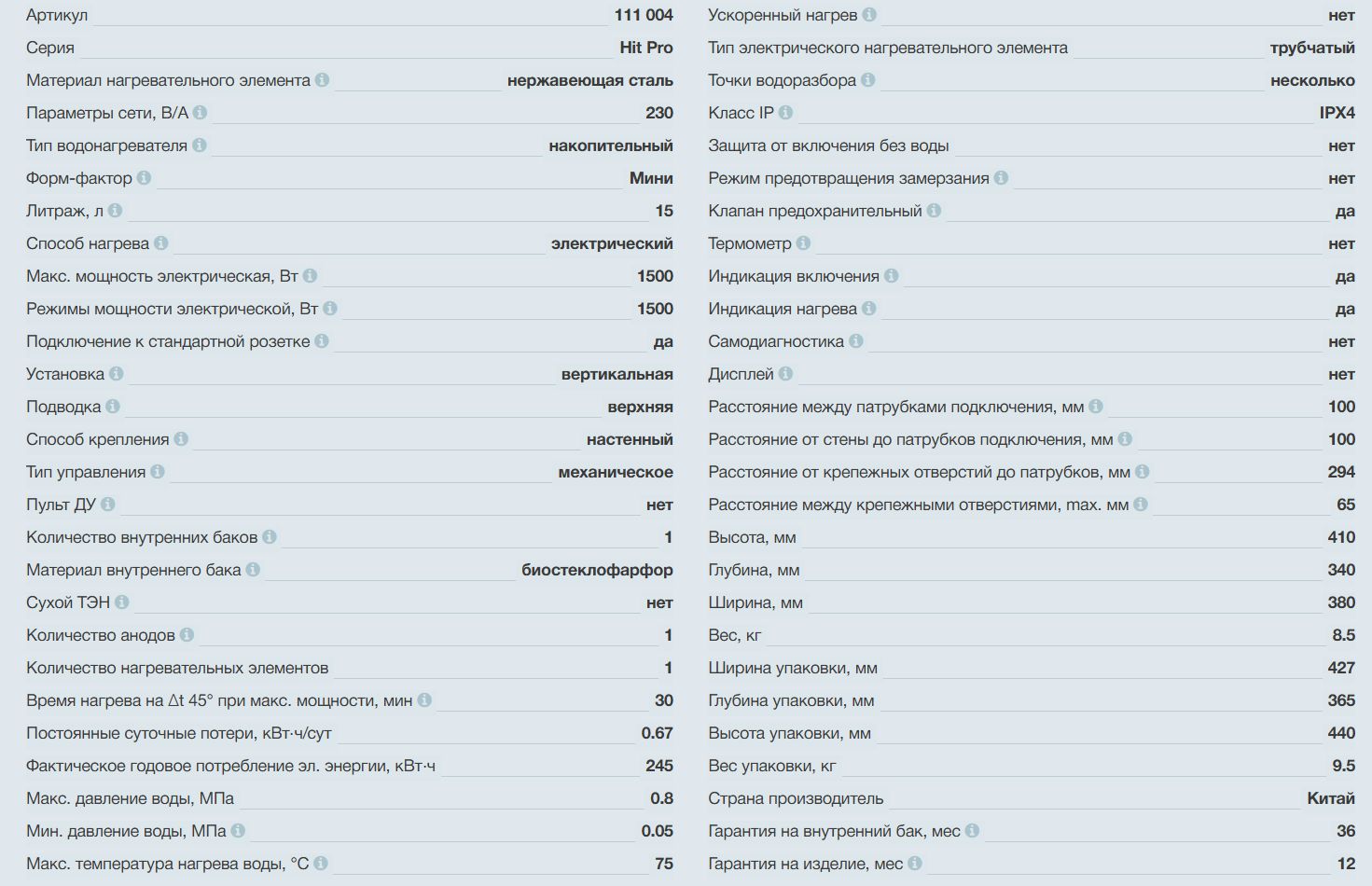 Объем горячей воды: 15 л
